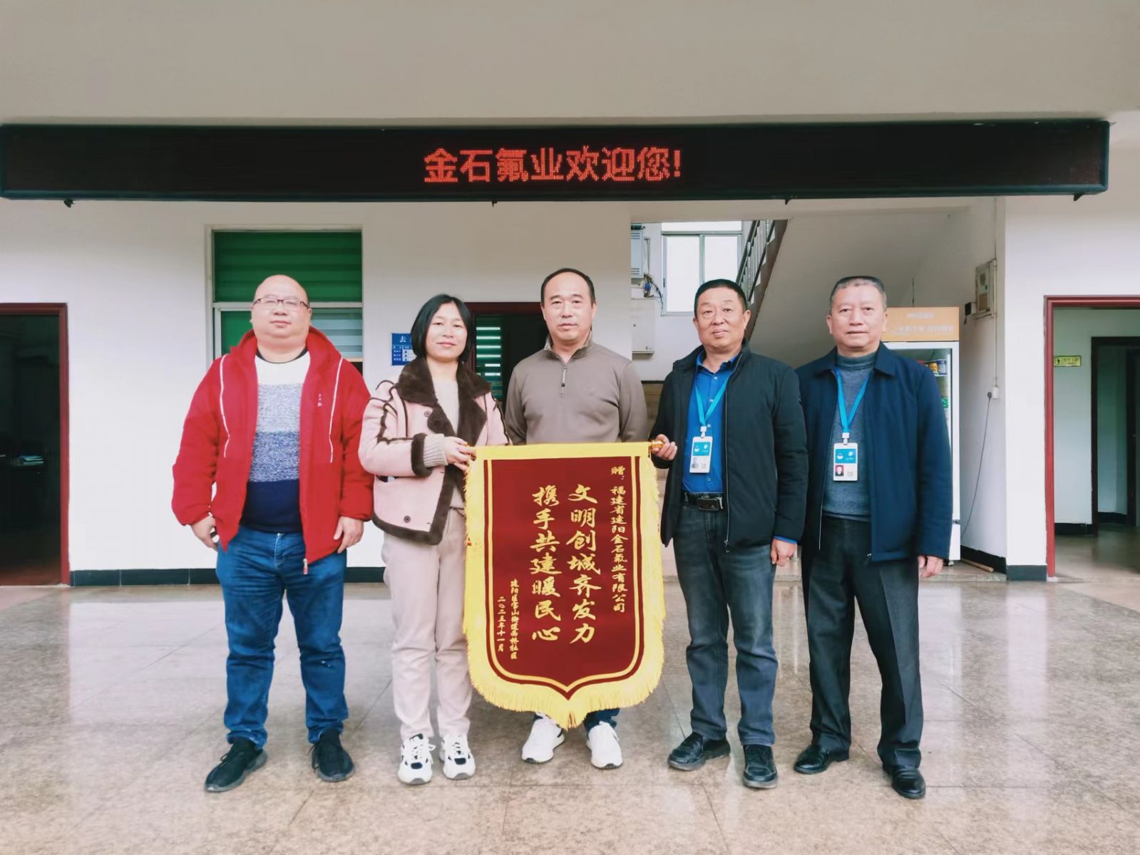 12月5日上午,建陽(yáng)區(qū)寶山街道西橋社區(qū)居委會(huì)給公司送來(lái)“文明創(chuàng)城齊發(fā)力,攜手共建暖民心”錦旗并表達(dá)誠(chéng)摯的謝意